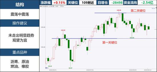 今日能化品无亮眼表现,原油板块仍处于震荡结构中,化工板块连续四天收阴,处于上涨中的震荡结构中。沥青跌势暂缓,但突破2688关键位,继续关注其空单开仓机会。国际原油期价震荡上涨,而国内原油小幅回落,呈现缩量整理状态 ,并未走出明显趋势,重点关注减产协议等宏观信息,短期内仍以观望为主。整个板块日内涨跌幅度不大,多为震荡结构,观望为宜 。