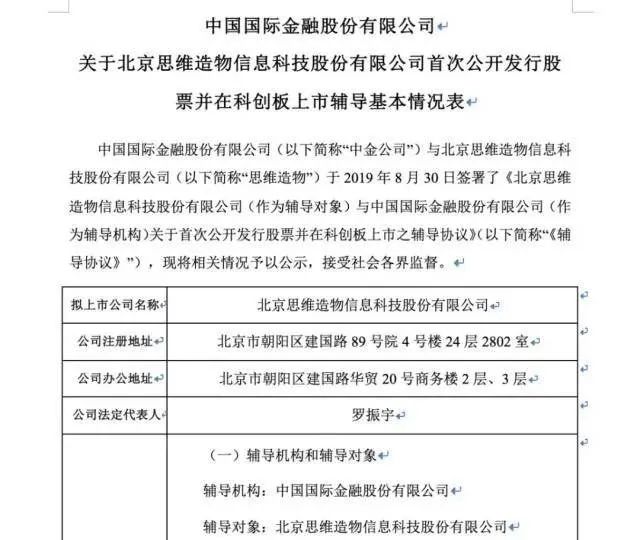 8月14日,据北京证监局网站披露的中国国际金融股份有限公司关于北京思维造物信息科技股份有限公司首次公开发行股票并上市辅导工作进展报告(第四期)。