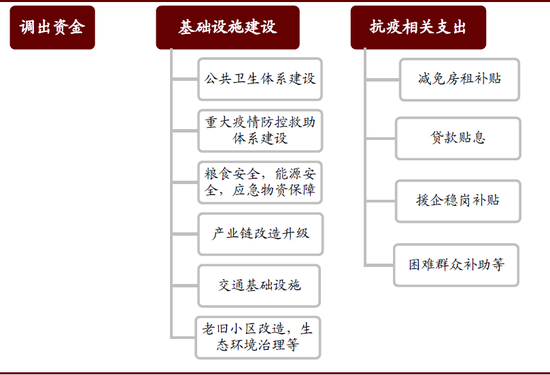 根据财政部新设的抗疫特别国债相关政府收支科目,抗疫特别国债主要用于调出(预计调入一般公共预算账户)、基础设施建设和抗疫相关支出。