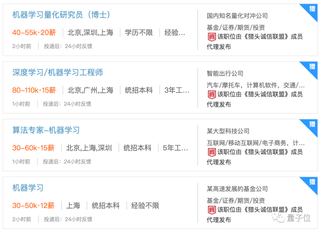 量子位前段时间的《AI/计算机志愿填报指南》里,一位清北毕业的AI名企员工透露,自己在京沪AI企业工作的同学,不少年薪都在40万以上。