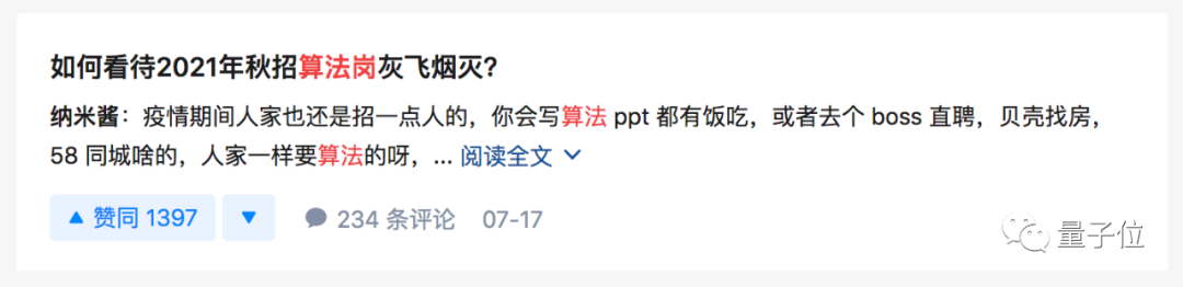 不信你看知乎,每年都会出现校招算法岗位竞争激烈的帖子,从“供小于求”到“灰飞烟灭”,再到“车毁人亡”,各种吓人的词汇纷纷涌现:
