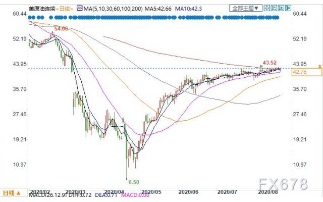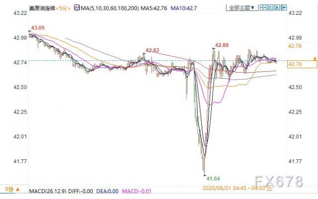 美国WTI10月原油期货电子盘价格周四(8月20日)收盘下跌0.35美元,跌幅0.81%,报42.76美元/桶。美油周四下跌近1%,此前报道称,OPEC+需要补偿逾200万桶/日的超额原油供应,且美国初请失业救济人数意外上升,显示经济复苏缓慢。
