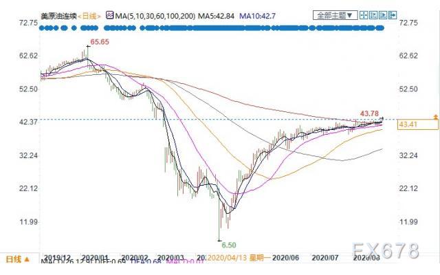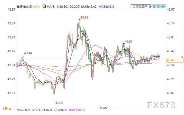 美国WTI10月原油期货电子盘价格周三(8月26日)收盘上涨0.06美元,涨幅0.14%,报43.41美元/桶。油价周三持稳,一方面油价新冠疫情期间需求前景担忧的拖累,但由于美国生产商在飓风劳拉到来之前关闭了墨西哥湾的生产,且美国EIA原油库存降幅超预期,油价也受到提振。