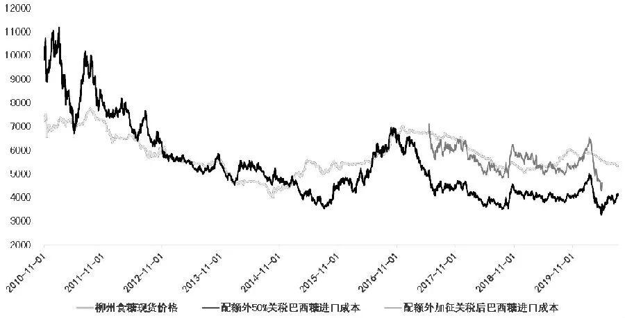 如果新政策放开进口,则国内糖价的运行规律将发生变化。若备案即可进口,那么只要进口有利润,海外糖就会源源不断地进来。在此情况下,配额外进口成本将成为国内糖价的天花板,国内糖价将被压制在进口成本之下。这会对国内糖价构成重大利空,糖价将面临大幅下跌的风险,不过我们认为这种可能性较低。