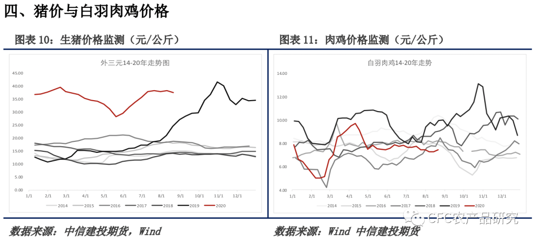 支撑现货价格上涨的,根源在于季节性的消费需求。加工性质的备货需求渐入尾声,各高校及中小学逐步开学。现货价格的较快上涨,在这个过程中,鸡蛋本身快速周转的特性加速了价格的上涨。