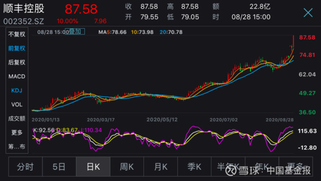 顺丰控股26日开盘直接涨停,股价首次突破80元以上,较年初翻了一倍,市值也创下新高,超过三通一达、百世、德邦等竞争对手市值之和。28日股价再度涨停,截至收盘报87.58元/股,总市值达3991亿元,位列A股总市值榜17位。