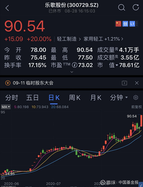截至最新收盘,乐歌股份股价已经创下历史新高,报90.54元/股。