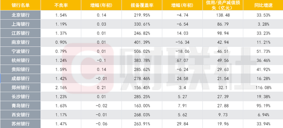 从城商行的数据来看,其中5家城商行不良率下降,8家不良率微升,其中郑州银行不良率最高为2.16%,宁波银行不良率最低为0.79%。