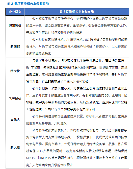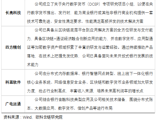 除了上述企业外,其他企业存在和数字货币有联系的业务,只是没有针对数字货币作出针对性研究或布局。如数字认证拥有大量数字加密认证的业务,和数字货币底层技术关联性很强。
