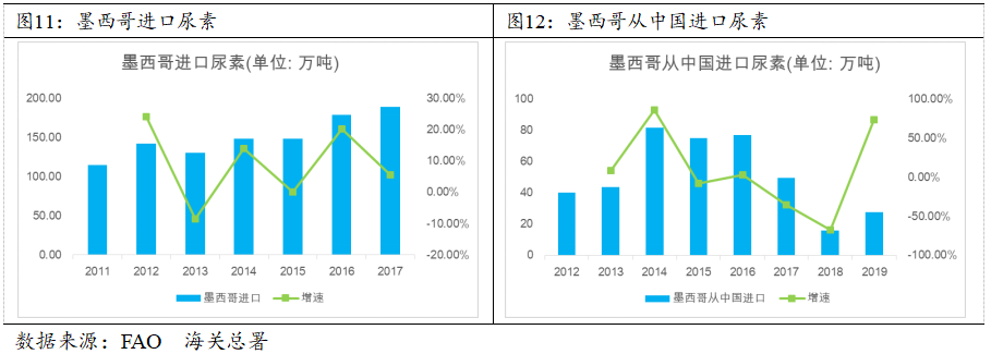 经查联合国粮农组织相关资料,墨西哥本国内不产尿素,所需尿素全靠进口,墨西哥进口尿素从2011年114.72万吨增加至2017年189.2万吨,年平均增速约9%,据此估算2020年墨西哥有望进口245万吨尿素。墨西哥从中国进口尿素整体上呈下降趋势,由高位54.8%下降至26.3%,乐观预计墨西哥下半年进口尿素量30%来自中国,据此测算下半年中国有望出口墨西哥尿素约37万吨。