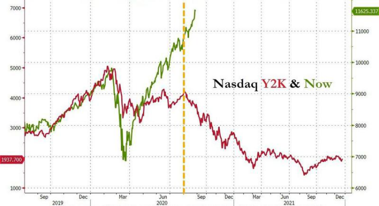 2000年互联网泡沫时期与今年的纳指对比