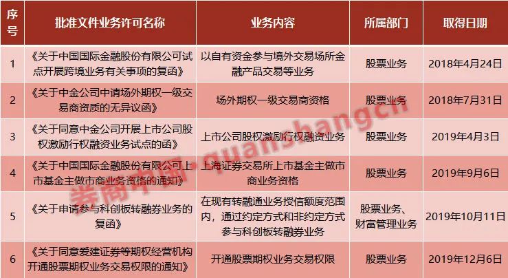 在此次招股书中,在“业务与技术”一节中,中金公司新增了业务创新情况,对报告期内新增的业务资格进行了详细介绍。
