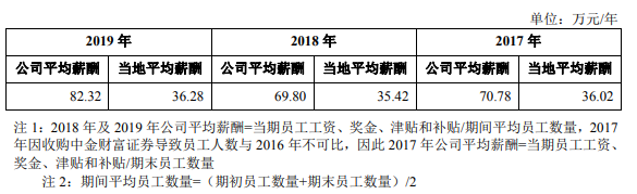 此外,中金公司选取了北京市“金融业-资本市场服务”行业作为当地平均工资水平进行对比。仍以2019年为例,中金公司的平均薪酬为82.32万元/年,当地平均薪酬为36.28万元/年,中金的薪酬水平仍远超北京金融业的平均水平。