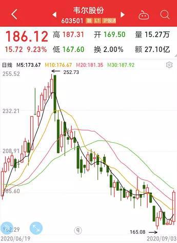 韦尔股份调整已经超过一个多月,最大调整幅度超过30%。8月以来,该股有10多家机构评级,多家券商给与目标价超过200元。西南证券给与的目标价较高。西南证券认为,公司作为国内泛模拟芯片全面布局的“光电龙头”,长期看好公司发展,给予公司2021年70倍PE估值,目标价243元,首次覆盖,给予“买入”评级。