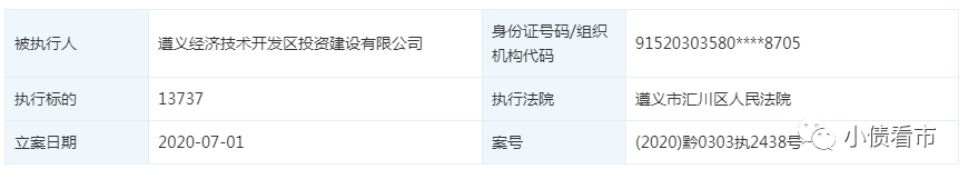 今年7月,遵义经开投被遵义市汇川区人民法院列为被执行人,执行标的为1.37万元。