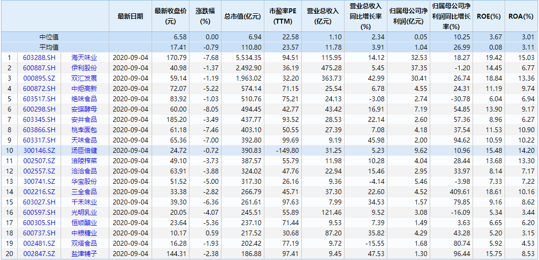 财联社9月5日讯,今年以来消费股持续拉高,但9月3日,海天味业冲高后,其总市值一度突破6500亿元,直逼中国石油,但随后风云突变,持续下挫,带动整个板块集体大跌。周五,整个食品板块继续集体大跌,前期抱团明显的千禾味业跌超6%,安琪酵母、煌上煌、桃李面包、天味食品跌幅都超过了7%。