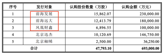 国盛金控募集资金则来自前海发展、前海远大、凤凰财鑫、北京迅杰和北京岫晞,其中前海发展、前海远大、凤凰财鑫均为上市公司实际控制人杜力控制的合伙企业,而北京迅杰为上市公司国盛金控的潜在关联方。