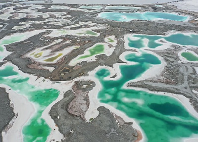 位于青海省海西蒙古族藏族自治州原大柴旦化工厂盐湖采矿队采矿区内的翡翠湖,出产品质较好的钾、镁、锂等。何五昌摄(人民视觉)
