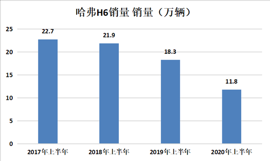 2020年上半年,长城汽车累计销售新车近40万辆,同比下跌 13.14%。其中,国民神车哈弗H6的销售量下滑,或许是长城汽车产生危机感的一个重要因素。