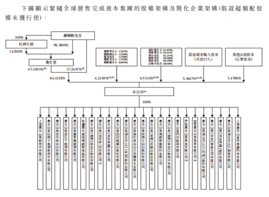 以全球发售后的架构来看,钟睒睒直接持有农夫山泉17.24%的股份,并通过养生堂持有67.17%的公司股份,共计持有公司股份占比达84.41%。以农夫山泉上市首日收盘市值3703亿港元计算,其创始人钟睒睒身价近3125.7亿港元(约合人民币2750.62亿元)。