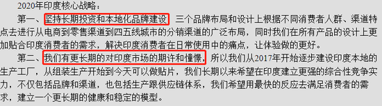 关于2020年印度市场的核心战略,公司表示,要坚持长期投资和本地化品牌建设,并建立一个更长期的健康和稳定的模型。