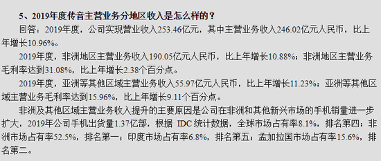 对此,传音控股表示,公司持续深耕非洲、印度、南亚、东南亚等全球新兴市场。公司未来还将紧密围绕“一带一路”建设和中非合作国家战略,不断拓展海外市场和业务。