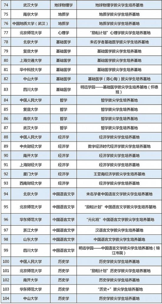 教育部:首批基础学科拔尖学生培养计划2.0基地名单公布