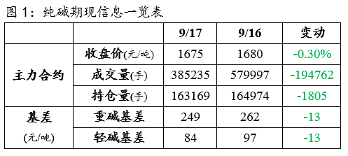 2、仓单:9 月 17 日纯碱仓单数量 125 张,较上一交易日减少 1242 张;有效预报量 2780 张。