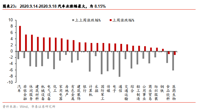 上周领涨板块由中游制造转为金融、周期,主要源于:上半周公布的8月经济数据反映制造业投资改善幅度较大、十四五新能源规划预期上升;下半周北向资金回流金融消费股、券商合并预期再起。美国财政刺激不确定性背景、叠加A股消费股估值回落到前低,我们预计北向资金波动或收窄。临近中秋十一假期,市场进入节前+会前交易模式,政策的敏锐度和景气确定性的关注度或提升:内部十月五中全会、消费旺季将至,外部美国大选电视辩论临近、科技领域限制持续、地缘局势日趋紧张、欧洲疫情反弹等因素叠加,建议关注盈利弹性/政策催化/区域热点三方向及对应六大链条。