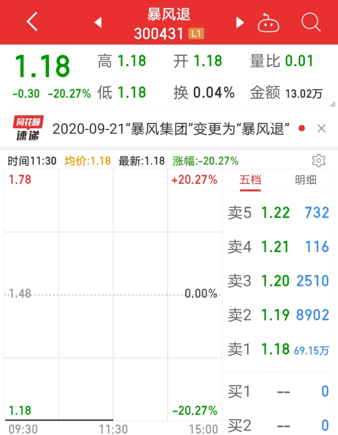 9月21日起,创业板公司暴风集团股票交易正式进入退市整理期,在退市整理期30个交易日后公司股票将被摘牌。