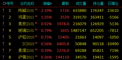 早盘能化期货一盘惨绿中,纯碱逆势上扬涨超2%,未受到抛售氛围影响。