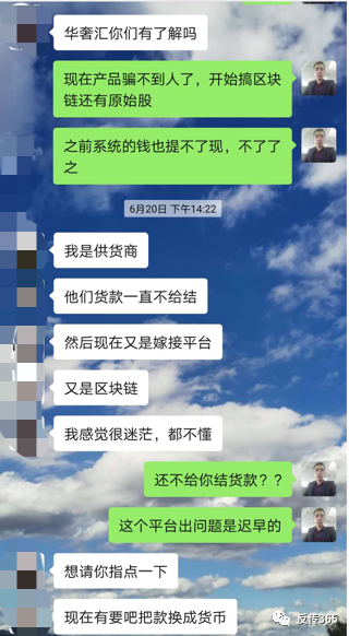 六月份的时候反传销365网还接到一名华奢汇商城的供货商的投诉,讲述华奢汇商城已经拖欠自己货款70余万,当时还和对方聊到该公司离最终崩盘已经没几天了。