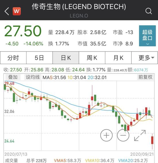 而隔夜,其美国上市子公司传奇生物也曾跌超20%。