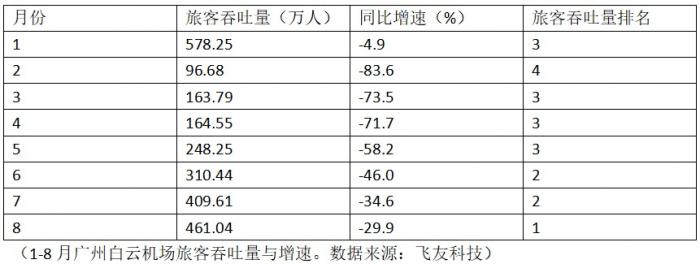 原标题:前8月城市机场复苏排名:广州全国第一,三亚最受欢迎
