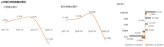 今年上半年,52家上市银行中有28家的净利润同比下滑。其中包括六大行、10家股份商业银行中9家均为负增长;36家城农商行中则有13家负增长,且呈现出明显的地域性差异。