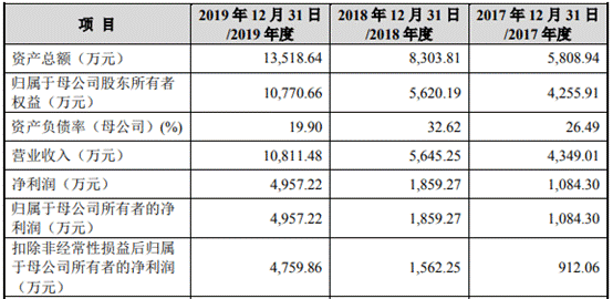 2017年-2019年,尚沃医疗资产总额分别为5808.94万元、8303.81万元、13518.64万元,归属于母公司股东所有者权益分别为4255.91万元、5620.19万元、10770.66万元。