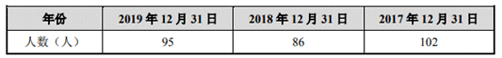 2019年,尚沃医疗员工人数不足100人,且较2017年减少7人或6.86%。2017年-2019年,尚沃医疗的员工人数分别为102人、86人、95人。