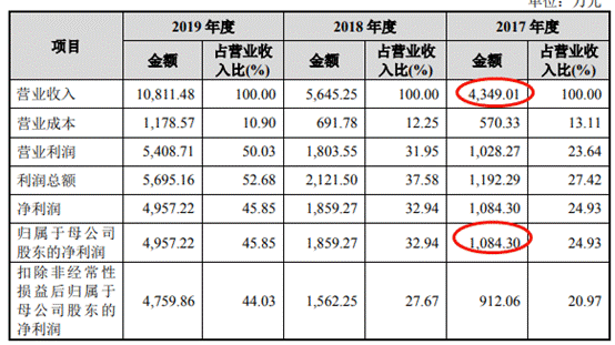 但尚沃医疗招股书显示,公司2017年营收为4349.01万元,比年报营收数据少160.75万元;归属于母公司所有者的净利润为1084.30万元,比年报净利数据少210.99万元。