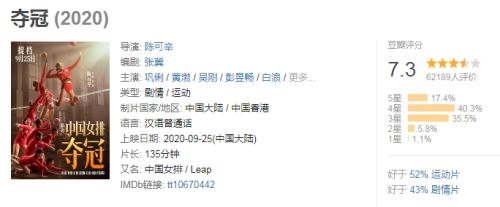 上映21小时后票房达到亿,《夺冠》率先吹响了今年国庆档号角。