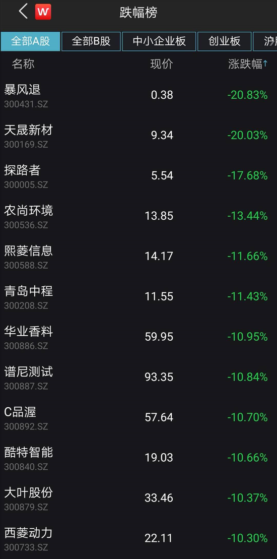 个股方面,41只跌停报收,暴风退、天晟新材20%跌停。