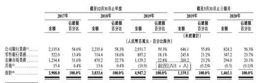 其中,公司银行业务对营收的贡献最大,营收占比超过50%且逐年上升。2017-2019年度,威海银行来自公司银行业务的营业收入分别为人民币(单位下同)21.36亿元、22.35亿元及29.32亿元,分别占同期营业收入总额的54.6%、58.3%、59.3%。