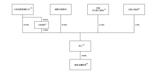 根据招股说明书,威海银行的主要股东包括山东高速集团公司、山东高速及威海市财政局。其中,山东高速集团公司拥有山东高速70.91%的股本,为山东高速的控股股东。山东高速及威海市财政局分别直接持有威海银行约13.96%及18.50%的股本,山东高速集团公司直接及间接持有威海银行约58.54%的股本。