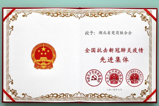 9月8日的全国抗击新冠肺炎疫情表彰大会上,我代表楚商联合会领了这个奖。楚商联合会秘书处说把奖牌邮寄回去就可以,我坚持送回来。这是全体楚商的荣誉,也是对中国民营企业抗疫贡献的肯定。