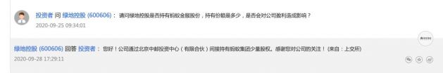【TechWeb】9月29日消息,日前,绿地控股在互动平台表示公司通过北京中邮投资中心(有限合伙)间接持有蚂蚁集团少量股权。