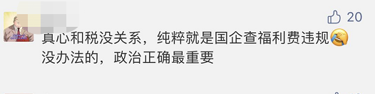 有网友表示,纯粹就是国企查福利费违规没办法的,政治正确最重要
