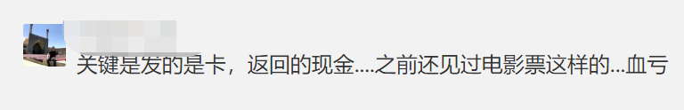 有人觉得亏惨了:关键是发的是卡,返回的现金....之前还见过电影票这样的...血亏
