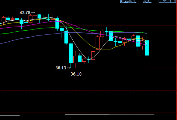 2,原油日内大跌6.24%,出现一根大阴线,空头单边走势强盛,任何反弹都是进场空单的机会,在价格未抵达36.10之前,不建议尝试多单;