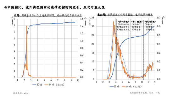 我们来看这张新冠统计时序图,左边是中国的情况,右边选了爆发疫情较早的意大利作为对比案例,你可以看出来,前面的过程跟我们差不多,但是我们用了大概一个月的时间从最低到最高又到几近归零,意大利差不多用了三个月的时候,但是似乎在8月初又开始出现了上升的过程。