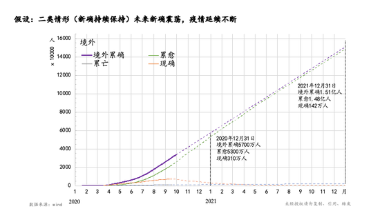 如果按照最近的趋势往下发展就变成第三种情形。到年底12月31日累计确诊可能达到1亿人,下一年年底的时候累计26亿,区别还是非常大的。
