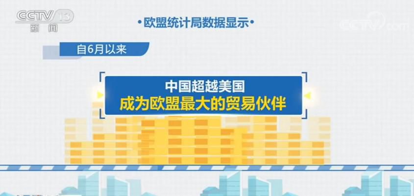 据全球贸易观察统计,今年第二季度,中国已成为德国第一大出口市场。欧盟统计局数据则显示,自6月以来,中国超越美国成为欧盟最大的贸易伙伴,前7个月中国与欧盟的进出口总额达到3287亿欧元。